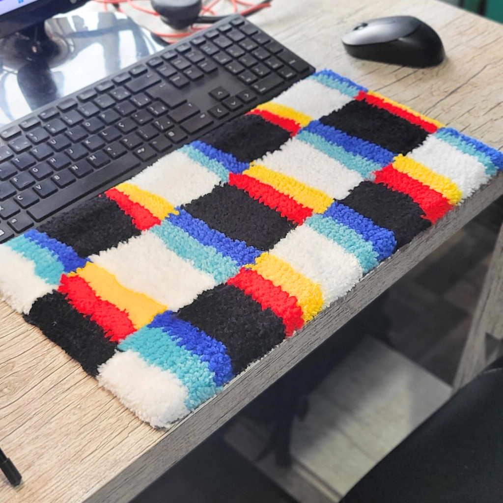 Procurando um apoio de braço ergonômico e estiloso para teclado? Nossos apoios são peças únicas feitas artesanalmente em tufting e desenhadas pela artista têxtil Thomas Nunes, combinando conforto, arte e sofisticação. Cada item mede 40 cm x 22 cm e é inspirado em movimentos artísticos como Bauhaus, brutalismo, abstracionismo, modernismo e arte concreta.