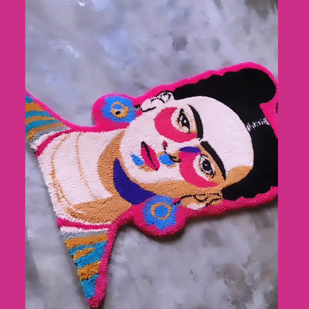 Peça exclusiva da Tapetopia, elaborada artesanalmente pelo artista textil Thomas Nunes com a técnica de Tufting. Frida em fios. Uma homenagem vibrante à força feminina e à arte que transforma. Feita 100% em lã, com design exclusivo em tufting.