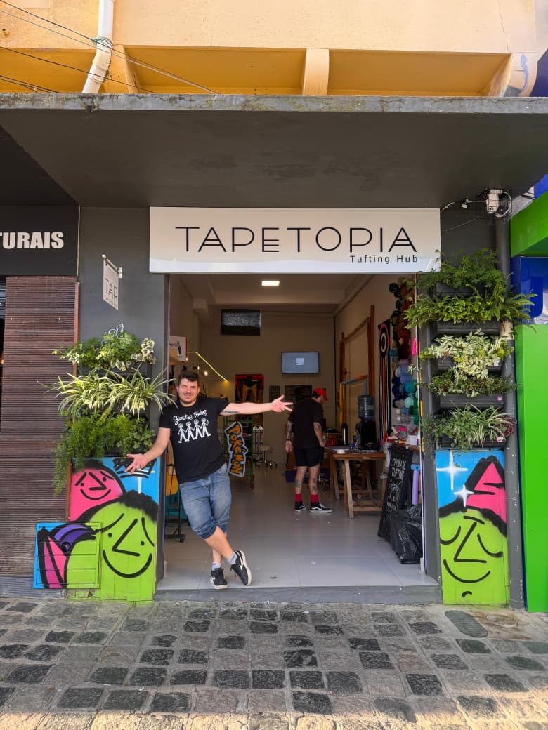 A história da Tapetopia não nasceu pronta; ela foi tecida ponto a ponto. Tudo começou em 2020, em meio às incertezas da pandemia. Sem estrutura, mas com muita vontade, o primeiro ateliê foi improvisado dentro de um pequeno quarto de apartamento.